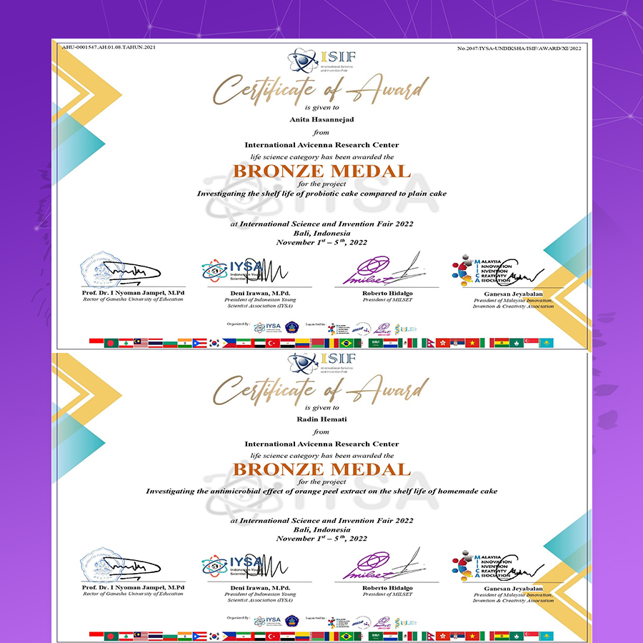 در این مسیر زیبا قدم به قدم همراه بچه ها هستیم تا پروژه های پژوهشی شان را در جشنواره های معتبر داخلی و خارجی شرکت دهند و افتخار آفرین باشند.